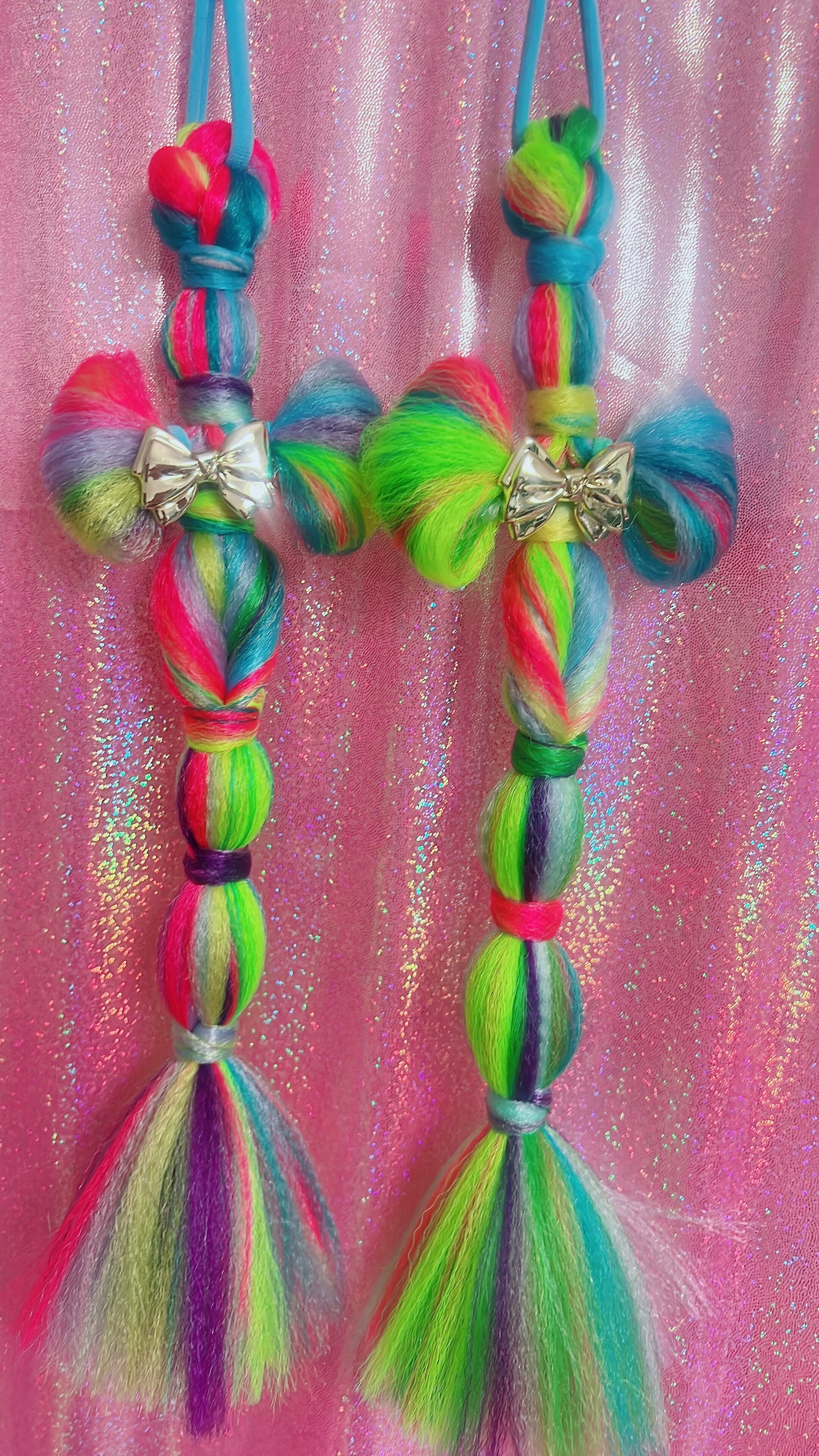 ※ハンドメイド商品になり、繰り返し使えますが消耗品と思ってお作りしています!一つ一つ真心込めて制作しておりますが、毛やリボン、リングなどを使った繊細な商品となりますので、引っ張ったり強い力を加えますと破損の原因になります。丁寧に扱っていただきますようお願い致します。また完璧を求める方はご購入をお控えください。