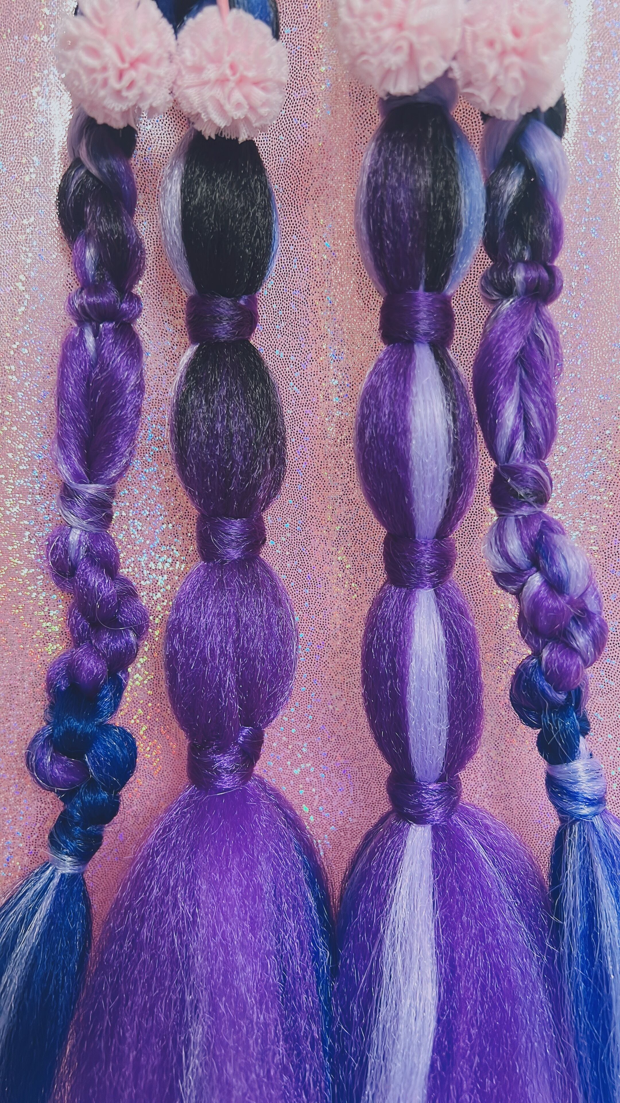 根元はブラックメインでパープルや紫、毛先に少し青紫が入っています♡好きなピンなのでデコっても可愛いへんしんヘアゴム!